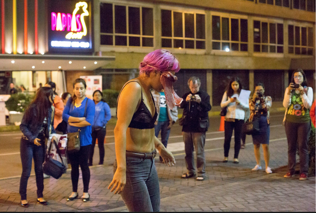 This morning, I received a Facebook message from a colleague with the following screen capture. This is peruvian performance artist whom I knew personally when she was living in New York. The performance in the picture took place at Encuentro: Espacio abierto a libre performance Encuentro “Desde Quebec a Lima” on July 15th and 16th.